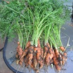 Then it was off to the carrots – I had harvested one bed during the week, but still had another bed to go. I love the smell of fresh picked carrots! Hard to explain, but if you have never grown carrots and buy from the farmers market or store – trying growing some – you will not go back – the smell, color and flavor – wonderful!