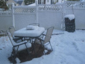 The forecast said that the snow was to start in the evening on Saturday, but about 11am the snow started and it kept coming – big, wet flakes. Within in an hour it was covering the ground. I went to bed at 11pm and it was still snowing! When it was all said and done we had about 10″ of snow! Glad I did everything I did not Friday.