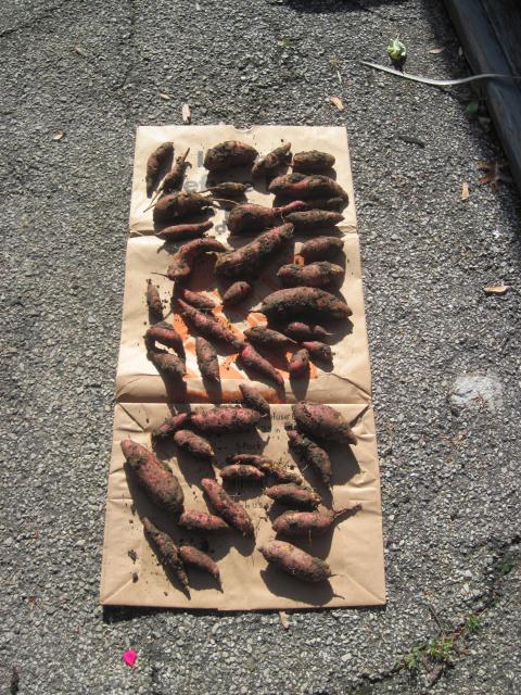 with for next year, but none will be shared. Sweet potatoes are a tropical plant and I think because our summer was not that hot, compared to last summer, that the crop did not do as well – could also have to do with the fact that I put them in the ground later this year than last. I was able to cure them in the sun for a couple of hours and am hoping to put them back out in the sun before I put them up.