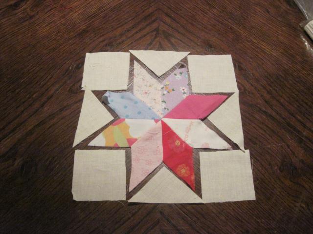 The next part is to complete the square by sewing 4 triangles and 4 squares to the star.