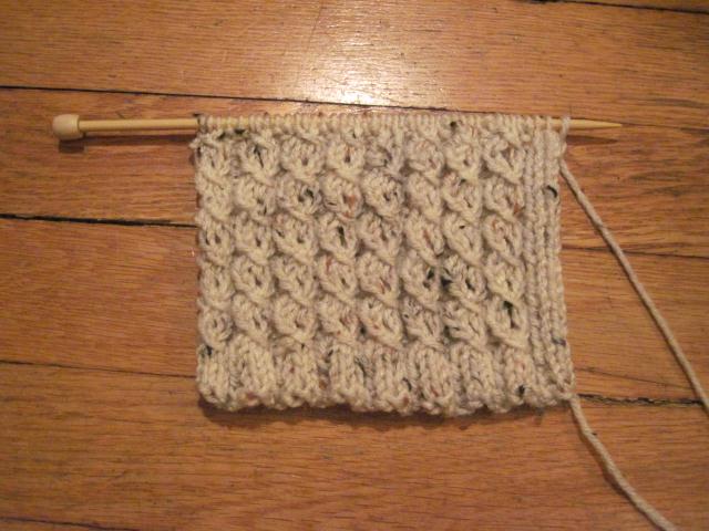 Repeat rows 6 – 9 until piece measures 4″ from cast on edge.  End by working Row 7