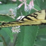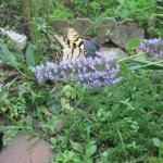 Saturday morning as I was sitting in my yard having my tea and petting and talking to the cat – I noticed a large butterfly. I watched this butterfly for about 45 minutes going from flower to flower and being chased by bees. It was very relaxing to watch and I always love it when I see nature enjoying the garden.