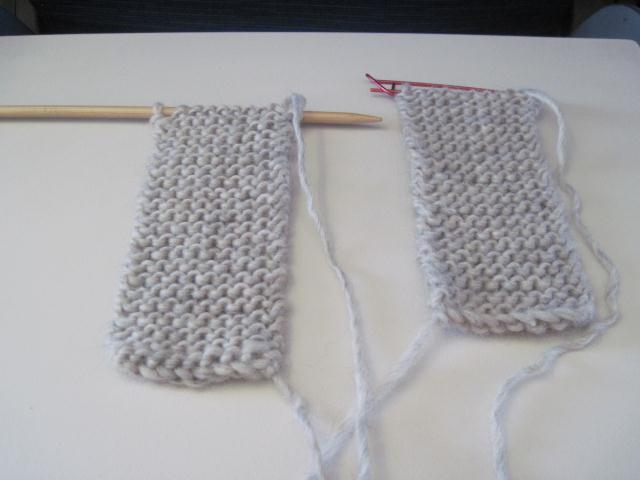2. Starting with a new piece of yarn, knit 23 rows.  Bind off.