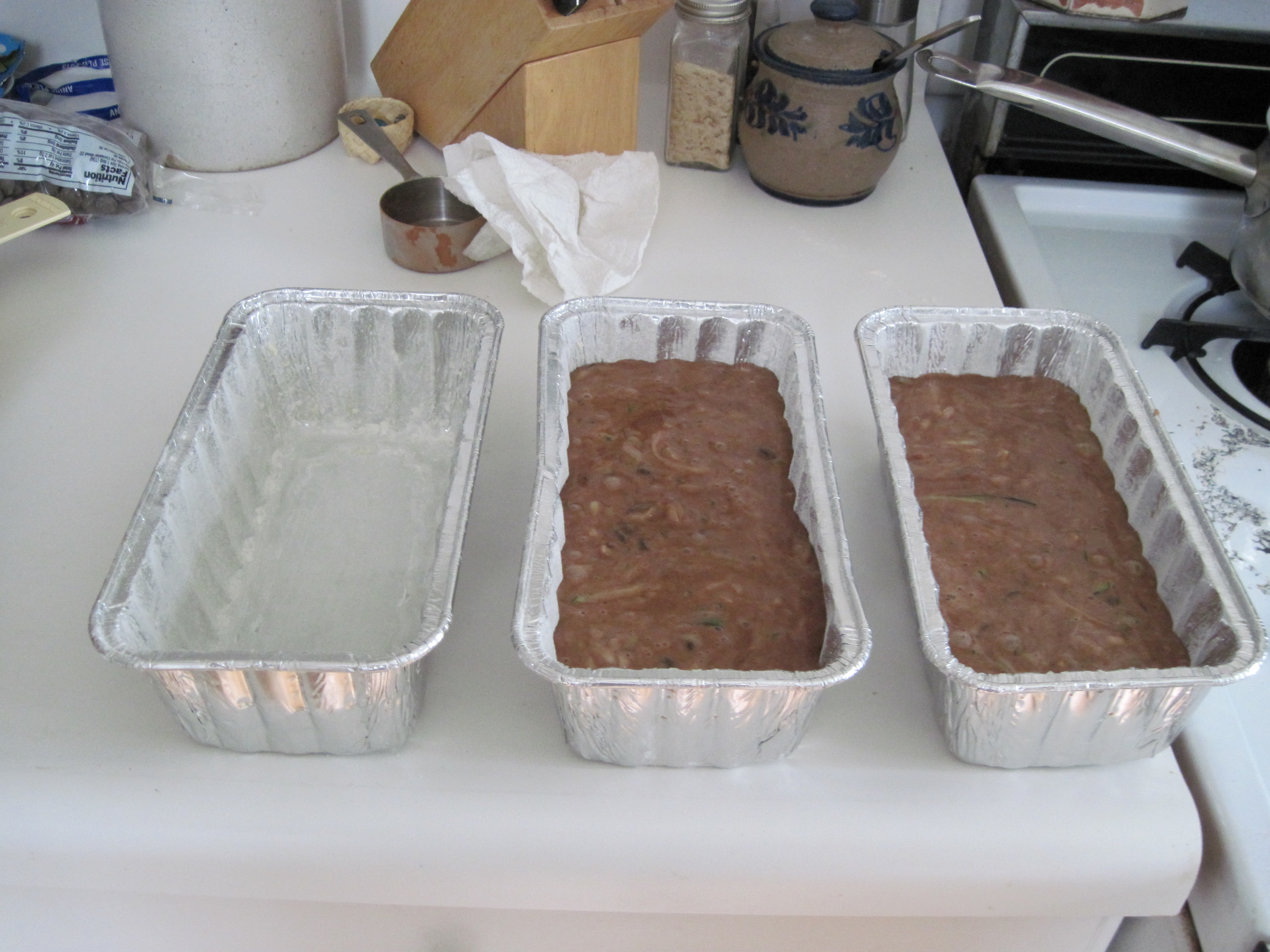 6. Bake the loaves for 1 hour and the muffins for about 20 minutes or until a toothpick comes out clean.