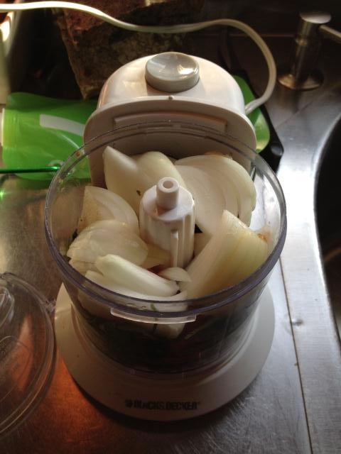 1. In a small food processor add the torn cilantro and 3/4 of the tomato. Slice the tomato like you would for a salad.