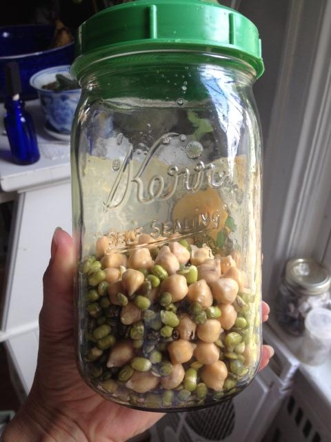 One of my favorite cookbooks and now I am taking the course – yeah!! is Nourishing Traditions – so to take an excerpt: “The process of germination not only produces vitamin C, but also changes the composition of grains and seeds in numerous beneficial ways. Sprouting increases vitamin B content, especially B2, B5, and B6. Carotene increases dramatically-sometimes even eightfold.”Beans are full of nutrients, but the phytic acid binds with calcium, magnesium, iron, copper and zinc making it almost impossible for you to adsorb those nutrients. Sprouting neutralizes the phytic acid.