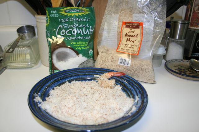 9. In a shallow bowl combine the coconut and almond meal. Depending on your love of coconut you can either do a 3 to 1 ration or a 2 to 1 ratio with the almond meal.
