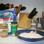 7. In a shallow bowl combine the flour, garlic and cayenne pepper. For the garlic and cayenne pepper – add as much or as little as you desire. If it had just been me eating these I would have added more of both.