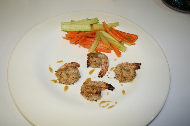 Baked Coconut Shrimp with Julienne Squash and Carrots
