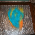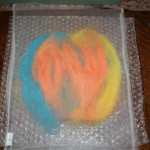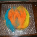 So last week when I wanted to try my hand at wet felting with Stella and she wanted to do needle felting- we ended up doing both. The only other wet felting I have done is over soap -so this was new to me. I really like needle felting, so don’t have the supplies for the wet felting and I like seeing my creation evolve. I realize that wet felting is not as easy as it looks or the videos show. I have trouble get all the wool roving to felt together when wet felting – but I guess I need more practice – it took time to figure out all the “to-do’s” with needle felting!