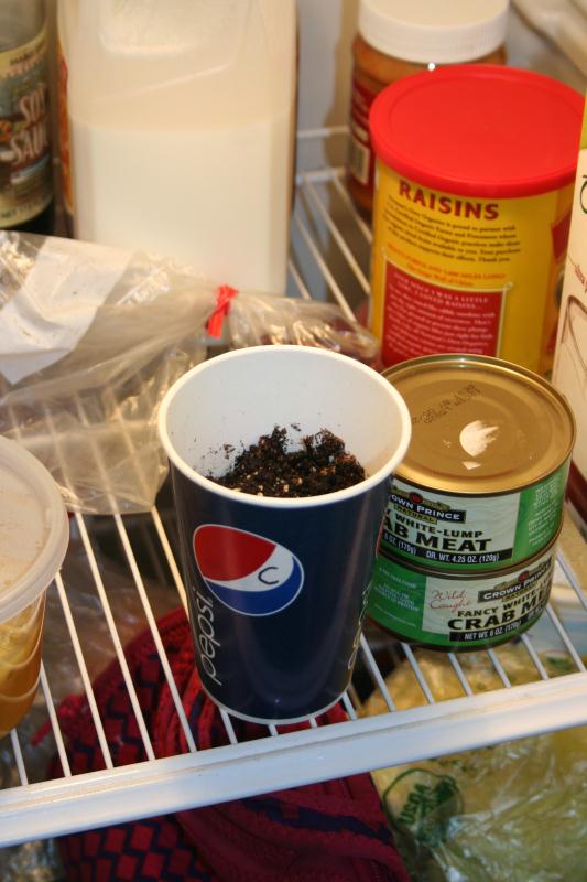 Home we went with 3 paper cups filled with dirt and several seeds.  They all received water and were then put in their experimental spot: Cup A-  was placed on the window sill, Cup B – was placed on the heater and Cup C was placed in the fridge.  Photos were taken.  Each morning Stella would check on them and if needed give them water – she would also do this at night.