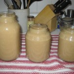 You will need apples that are sweet, not granny smiths. Once you can/jar your apple sauce it has a shelf life of 2 – 3 years! You can use Honey Crisp, Winesap, Fuji, Rome, Cortland. The first time that I made applesauce the recipe I found said to use an assortment of apples, but now since I pick a whole tree – I just use the one kind – mainly because the other apple farms in the area are not organic and I don’t want to mix organic apples with non – both ways made great applesauce.